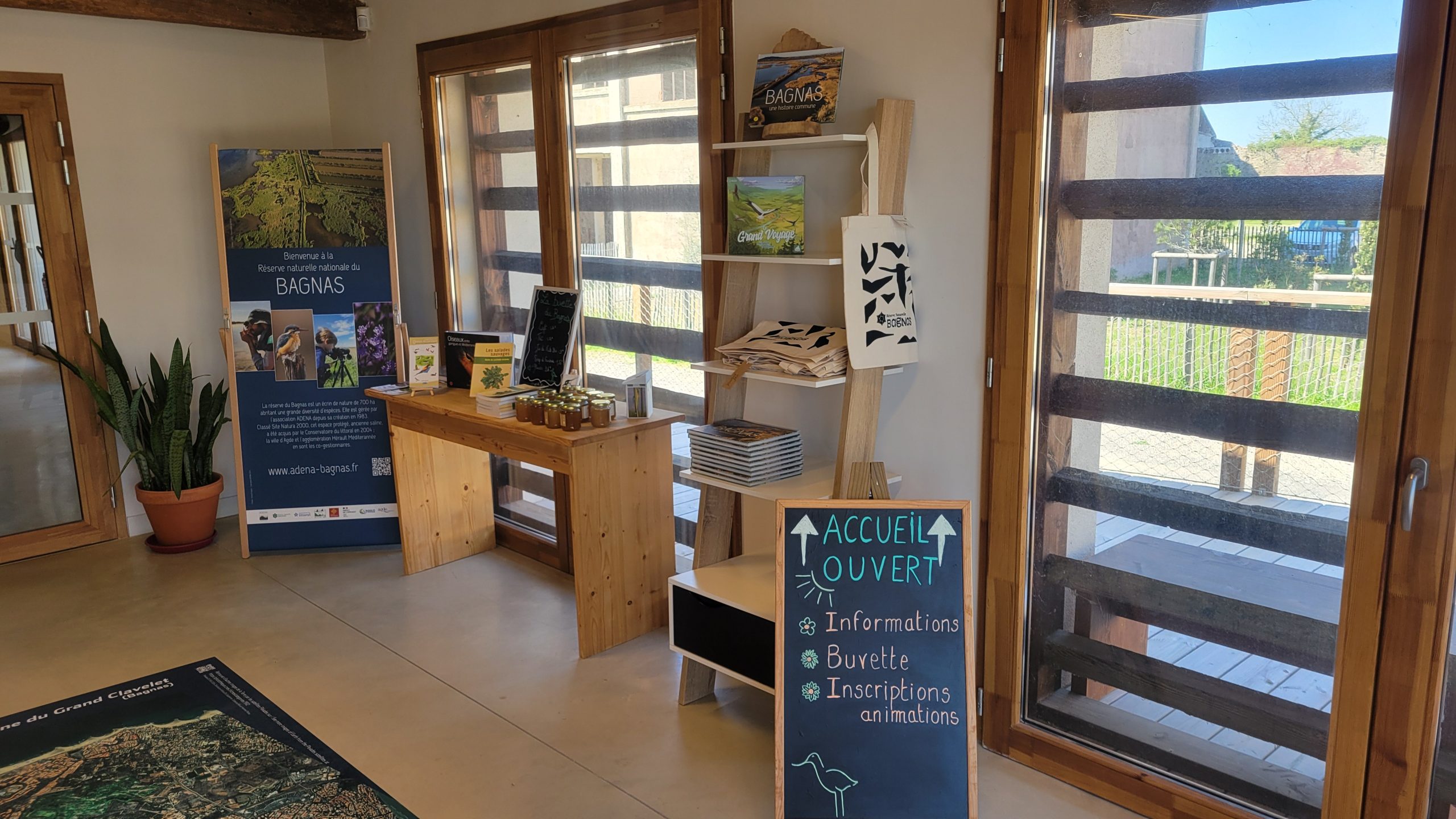 Découvrez le nouvel espace d’accueil, boutique et buvette de la Maison du Bagnas, dédié à l’information des visiteurs, à la sensibilisation aux enjeux de protection de la réserve, ainsi qu’à la découverte de produits et d’outils pédagogiques valorisant le patrimoine naturel, paysager, culturel et gastronomique du territoire.